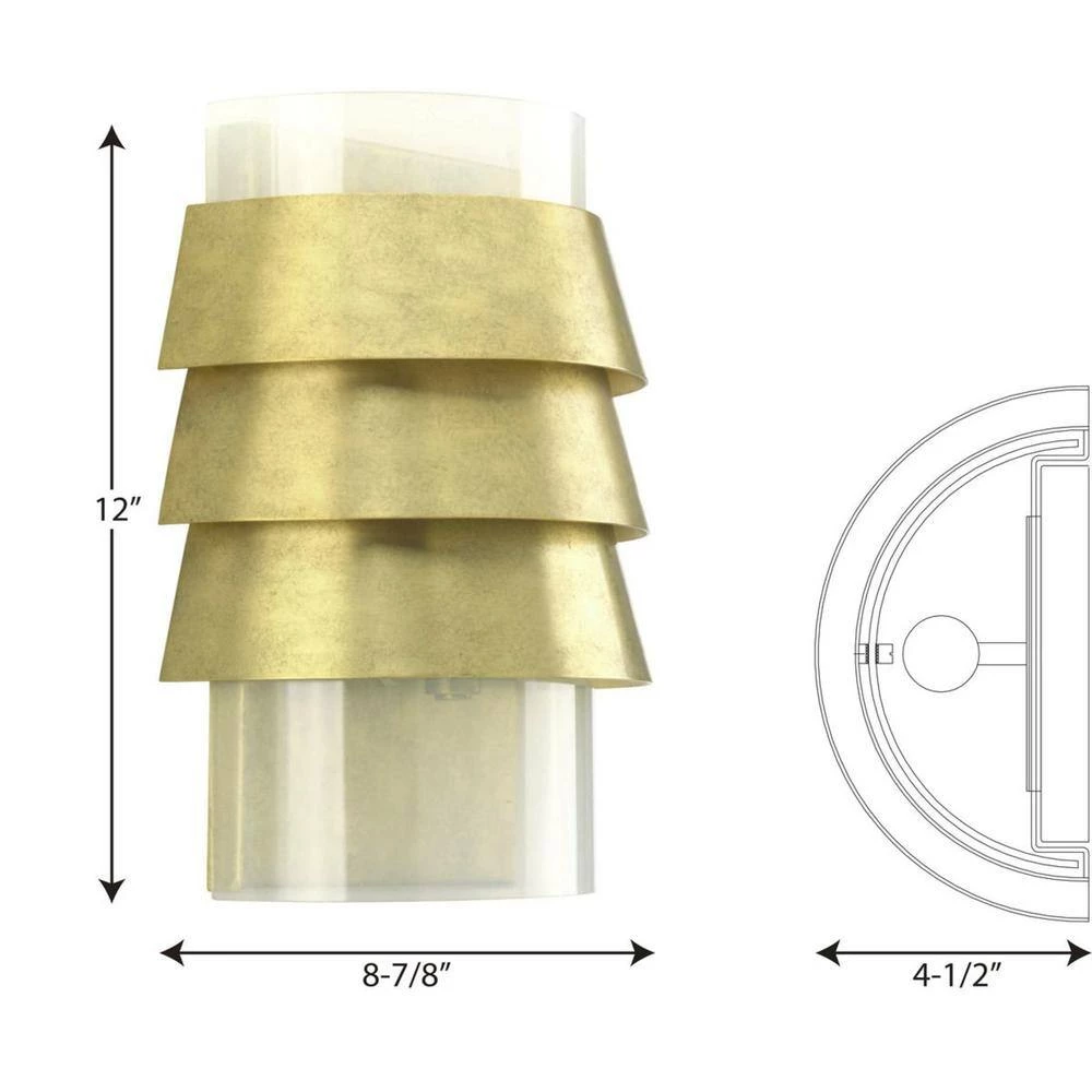 - Layered tiers of mellow brushed brass bands curve over opaque milk glass in the sandbar wall sconce