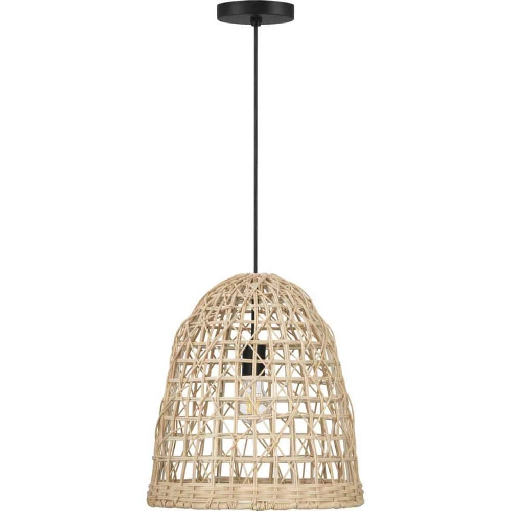 Covet organic design with the Jocassee Collection 1-Light Rattan Pendant. A light source peeks from within the woven rattan shade for a natural earthly glow. The hardware is finished in a classic matte black finish sure to complement a variety of style settings craving an organic touch.