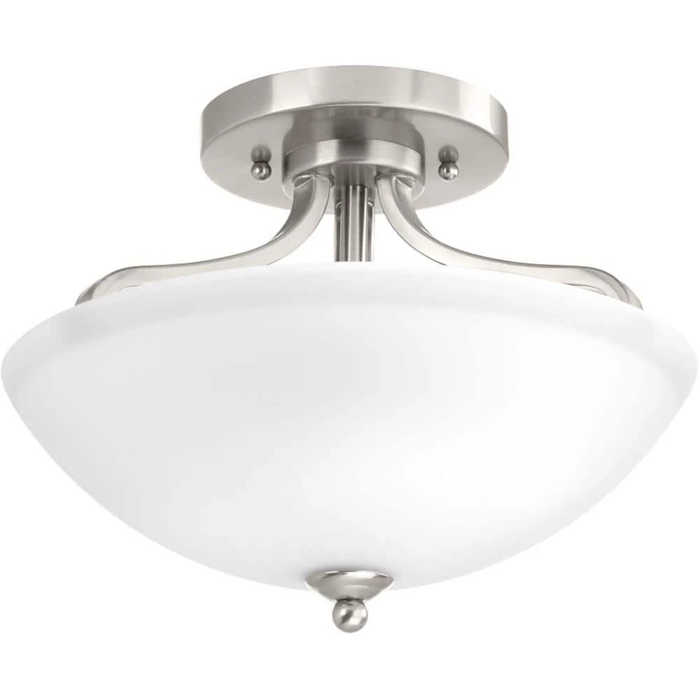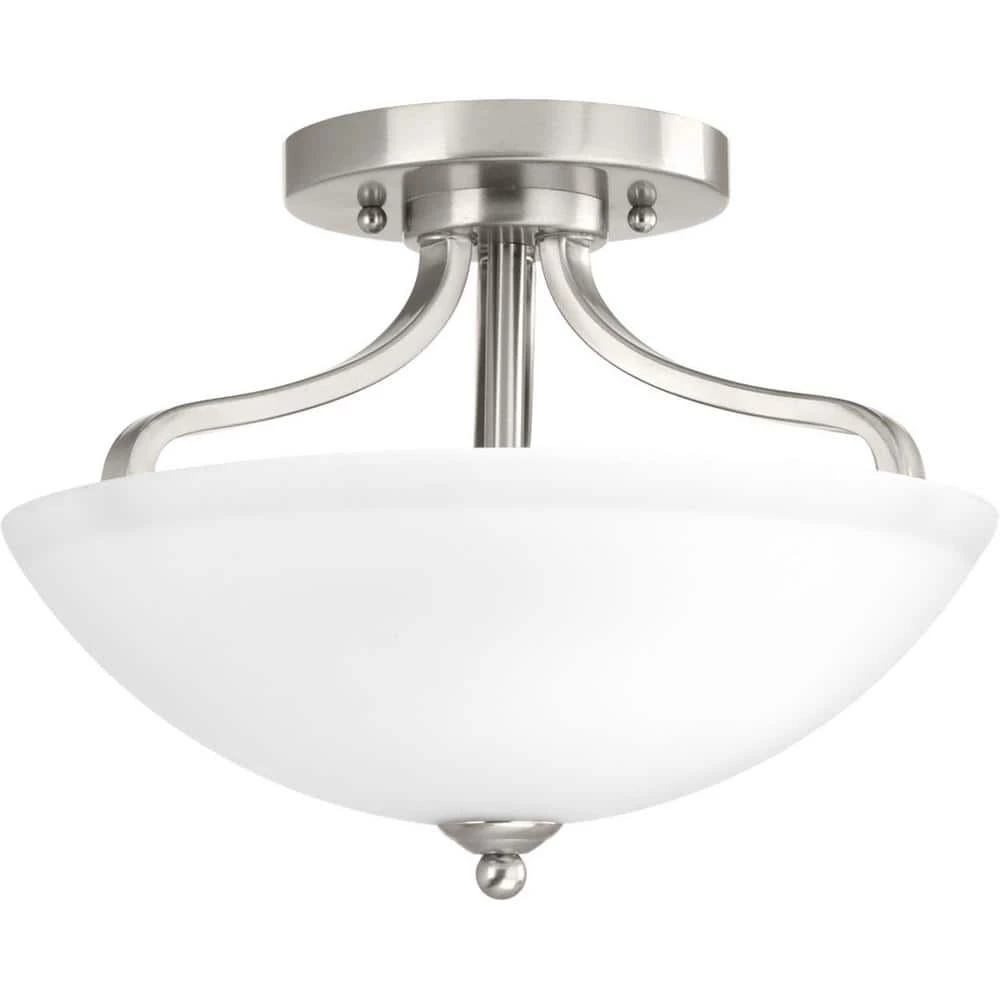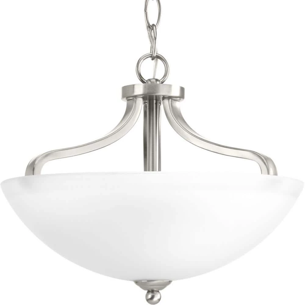 The Laird collection provides a contemporary complement to casual interiors popular in todays homes. Glass shades add distinction and provide pleasing illumination to any room, while scrolling arms create an airy effect. Brushed nickel finish.