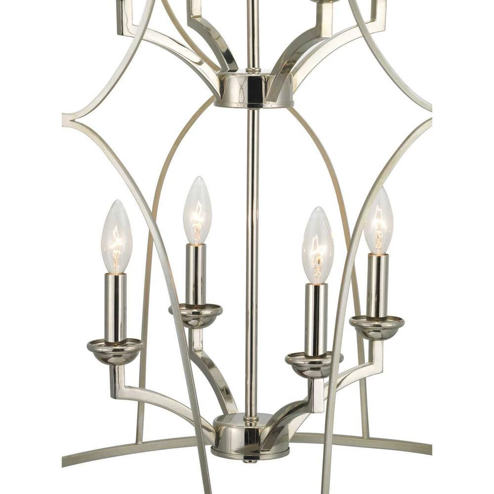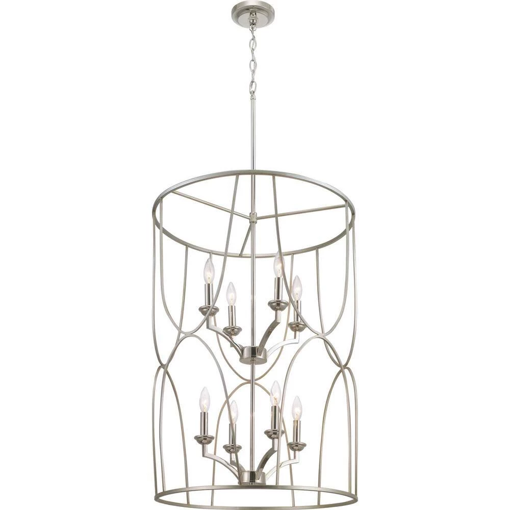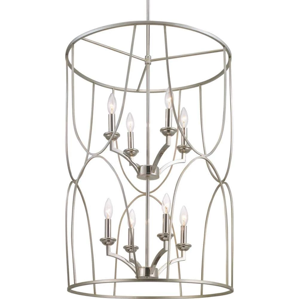 - 2-tiered eight-light chandelier works beautifully in a tall entry foyer, vaulted family room or living room