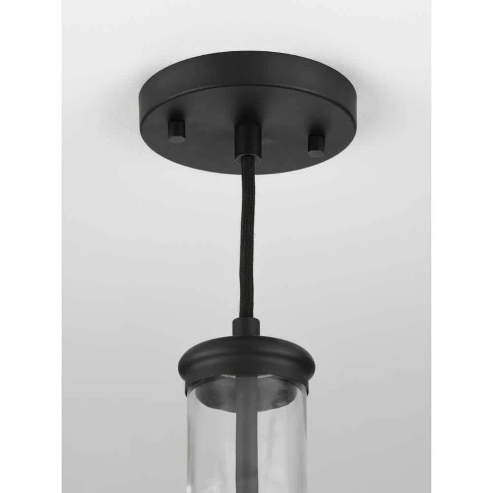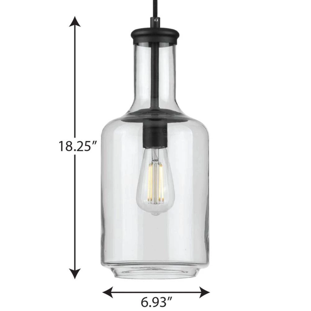 Introduce a pop of personality into your home with this pendant. A round ceiling plate coated in a black finish anchors the pendant in place as the light source hangs below. A bottle-inspired clear glass shade adds a twist to a simple industrial style that brings this light fixture’s vintage charm to the forefront of your home’s lighting design.