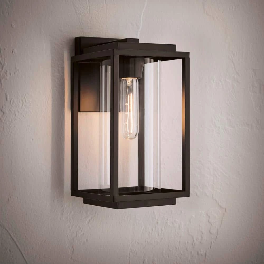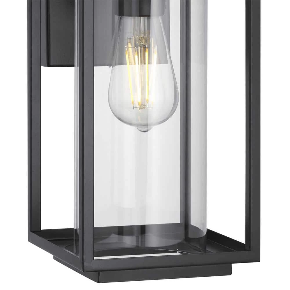 Select a high-style design for a high-traffic home with the Macstreet Collection One-Light Medium Wall Lantern. A boxy silhouette attaches to a black backplate that makes the versatile design compatible with a variety of exteriors and interiors. A clear glass shade nods the light fixture’s modern style inspiration.