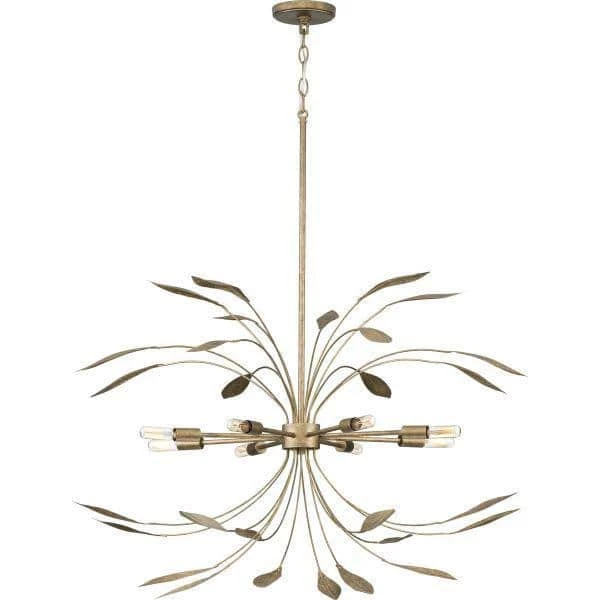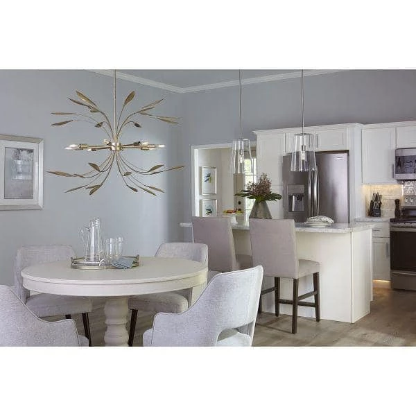 Take a naturalistic approach to modern room design with the Mariposa Collection 8-Light Antique Gold Contemporary Hanging Pendant Light. Slender branches bloom outward from the central stem bearing delicate leaves coated in a luxurious antique gold finish. The organic feel is balanced by the minimalist lines of its multi-directional light arrangement. For ideal illumination, use 8 candelabra base bulbs that are sold separately (60-Watt maximum – LED/CFL/incandescent). The hanging light is compatible with dimmable bulbs. The pendant’s organic design is ideal for any foyer, dining room, kitchen, breakfast nook, entryway, living room or stairway in contemporary and transitional style settings. It’s time to breathe new life into the mundane every day with timeless and truly transformative lighting. Make your purchase today to begin your journey to a whole new lighting experience. Progress Lighting products are designed for exceptional quality, reliability and functionality.