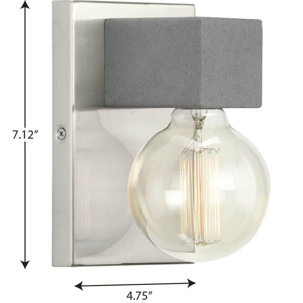 Give an unexpected artisanal edginess with the Mill Beam Collection 1-Light Brushed Nickel Industrial Wall Light. The slab silhouette is coated in a faux concrete finish accented by a brushed nickel backplate to create the perfect blend of organic and industrial character. For ideal illumination, use 1 medium base bulb that is sold separately (60-Watt maximum – LED/CFL/incandescent). The wall light is compatible with dimmable bulbs. We recommend using vintage bulbs to enhance the light fixture’s rustic aesthetic. The wall light’s industrial design is ideal for any entryway, hallway, foyer, bedroom, sitting room, living room, or bathroom in industrial and farmhouse style settings. It’s time to breathe new life into the mundane every-day with timeless and truly transformative lighting. Make your purchase today to begin your journey to a whole new lighting experience. Progress Lighting products are designed for exceptional quality, reliability, and functionality.