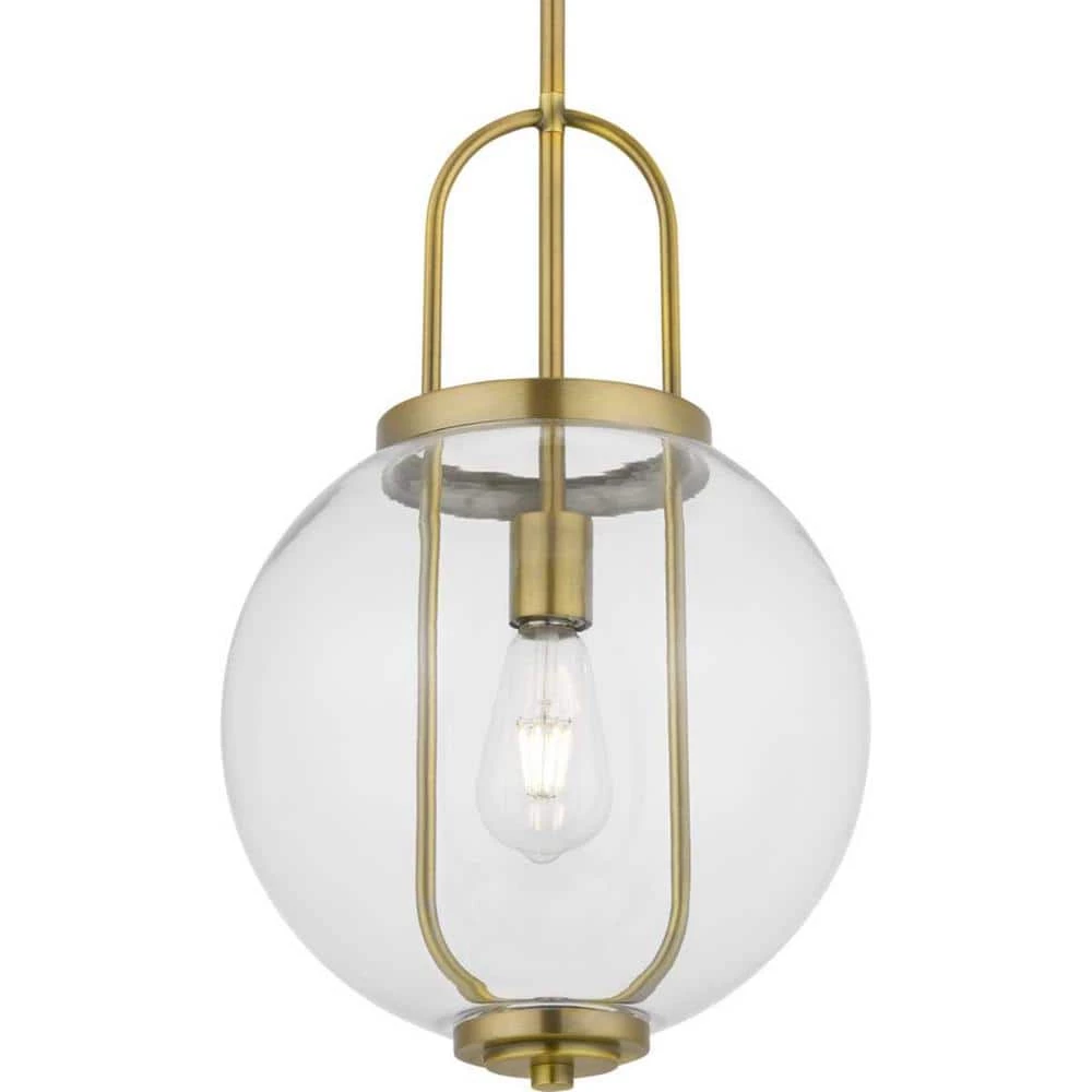 Upgrade the lighting in your home with Progress Lighting’s Mitchella 1-Light Vintage Brass Pendant. The clear glass globe shade has a contemporary appeal that’s perfect for your kitchen, foyer or dining room. Installation is easy with the included hardware. The metal construction and vintage brass finish are built to last.