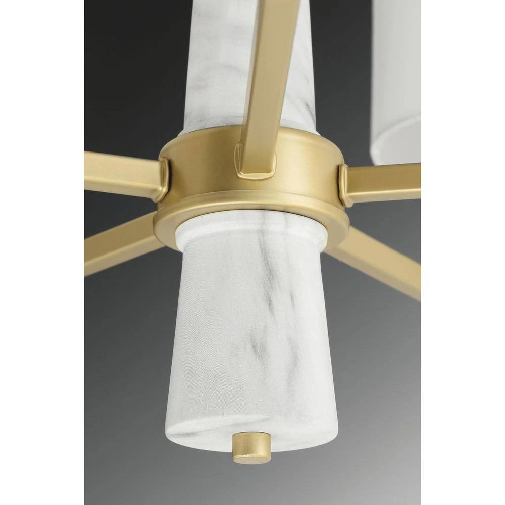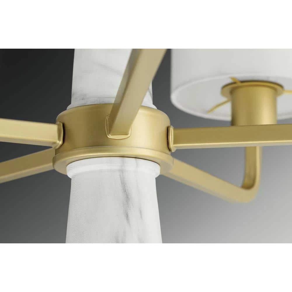 An intriguing fashion-forward lighting collection, Palacio pairs a Vintage Gold finish with faux white marble accents for a stunningly elegant design. White silk shades complement gold accents to create a statement-making style. Ideal for a variety of interiors.