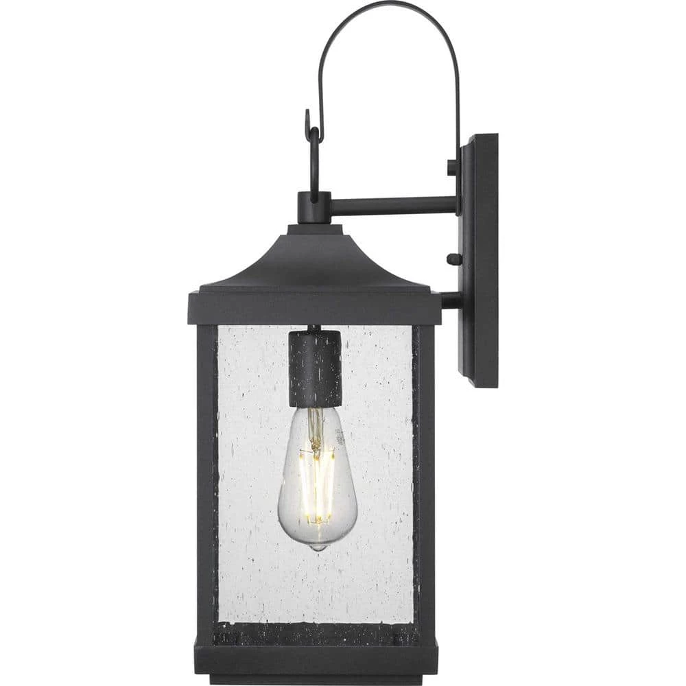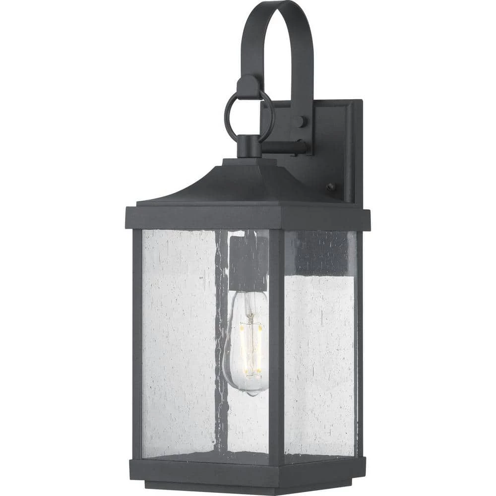 Help simply the process of creating a home you love with the charming character of the Park Court’s Collection 1-Light Medium Wall Lantern. A modern lantern silhouette attaches to a textured black backplate that makes the versatile design compatible with a variety of exteriors and interiors. Clear seeded glass panels add a pinch of unexpected visual interest that grants a nod to modern farmhouse style inspiration.