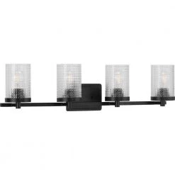Index Collection 4-Light Matte Black Etched Opal Glass Modern Bath Vanity Light by Progress Lighting