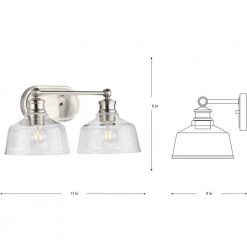 Singleton 17 in. 2-Light Brushed Nickel Vanity Light with Clear Glass Shades by Progress Lighting