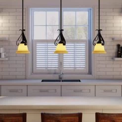Torino 1-Light Forged Bronze Kitchen Island Mini Pendant with Tea-Stained Glass by Progress Lighting