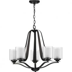 Kene Collection 5-Light Graphite Clear Glass Craftsman Chandelier Light by Progress Lighting