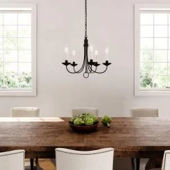 Five-Light Textured Black White Candles Traditional Chandelier Light by Progress Lighting
