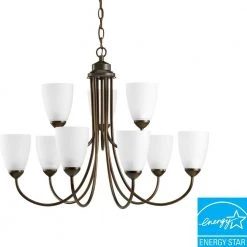 Gather Collection 9-Light Antique Bronze Chandelier with Etched Glass by Progress Lighting