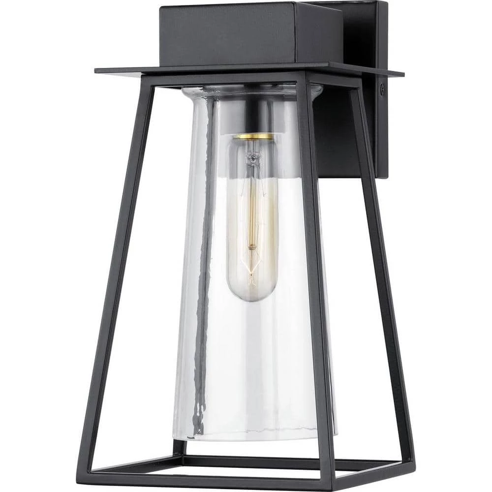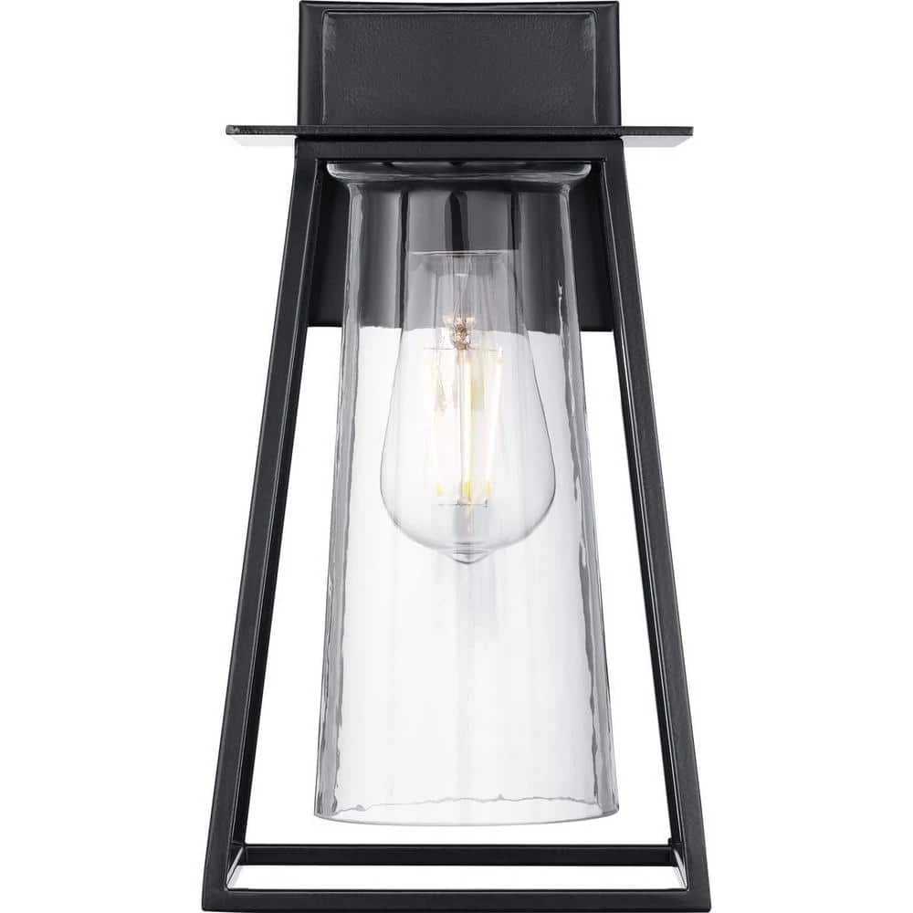 Incorporate a pop of personality into your home decor with the Raineville Collection One-Light Medium Wall Lantern. A modern silhouette attaches to a black backplate that makes the contemporary design compatible with a variety of exteriors and interiors. Clear glass panels allow an ambient glow to extend a warm welcoming to any entryway or foyer.