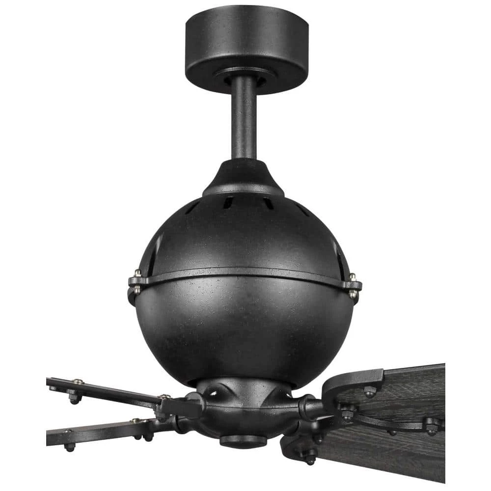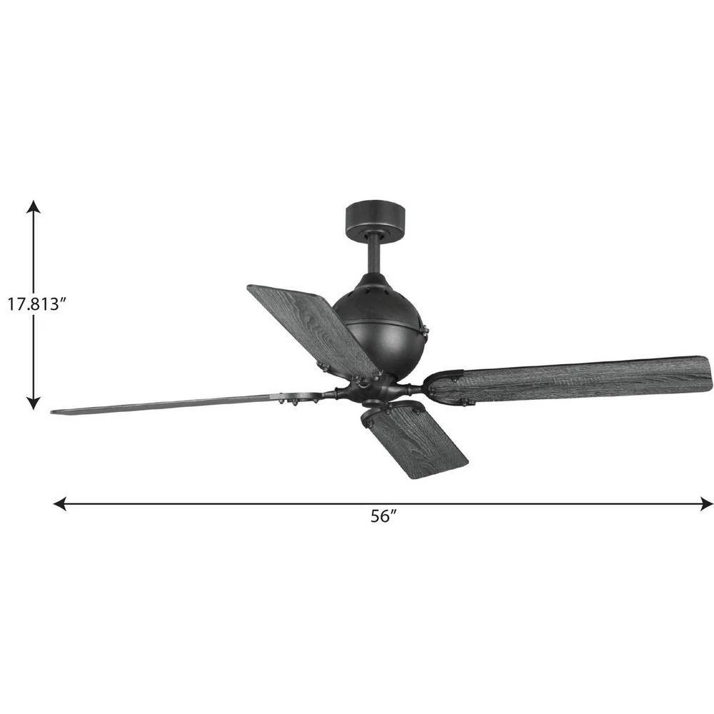 This ceiling fan offers a charming rustic look ideal for farmhouse-style spaces in need of a fresh breeze. 4 plywood blades attach to the fixture’s center by finely detailed metal arms. The fan’s center is coated in a beautiful black finish to complement your home decor.