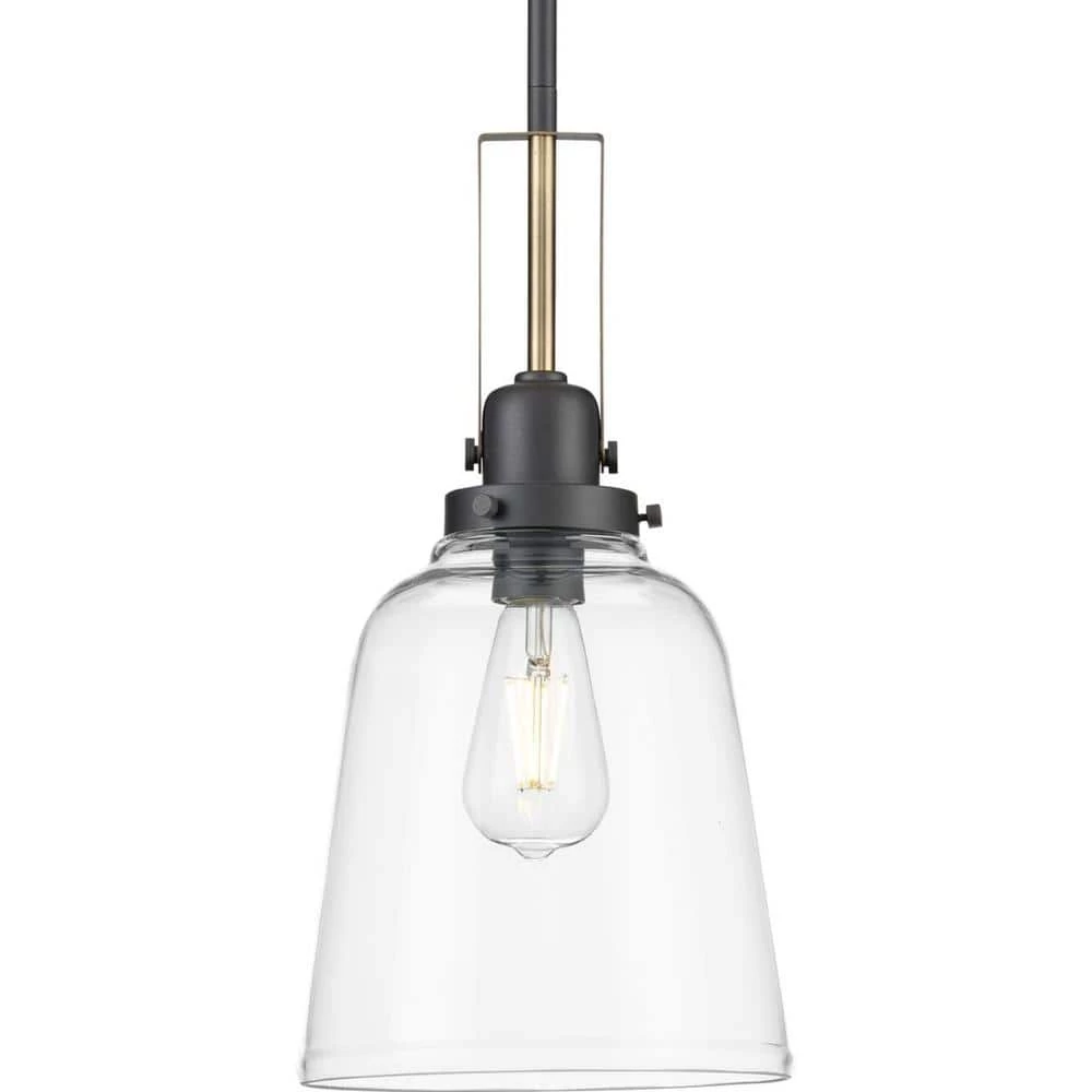 Integrated historical industrial elegance into your home decor with the Rushton Collection 1-Light Graphite Clear Glass Industrial Hanging Pendant Light. The sleek stem and industrial light base are coated in a beautiful graphite finish. A light source glows from within the clear glass shade for elegant illumination. For ideal illumination, use 1 medium base bulb that is sold separately (100-Watt maximum – LED/CFL/incandescent). The hanging light is compatible with dimmable bulbs. The hanging light’s industrial elegance is ideal for any foyer, dining room, kitchen, breakfast nook, entryway, living room, or stairway in farmhouse and urban industrial style settings. It’s time to breathe new life into the mundane every-day with timeless and truly transformative lighting. Make your purchase today to begin your journey to a whole new lighting experience. Progress Lighting products are designed for exceptional quality, reliability, and functionality.