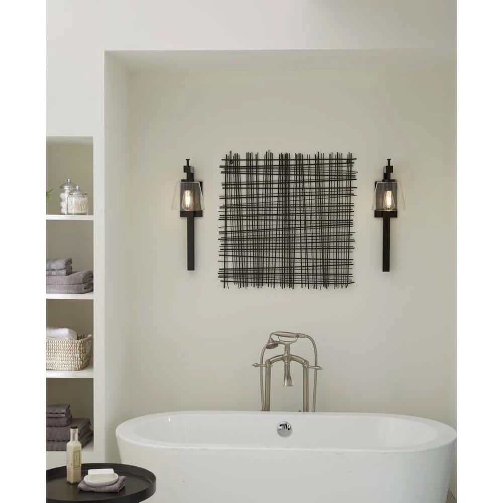 Embrace modern urban style with a wall sconce light from the Saffert Collection. A stoic beam-style frame coated in a classic matte black finish is punctuated by crisp, clear glass shades. Shop the Progress Lighting collection today for your next project.