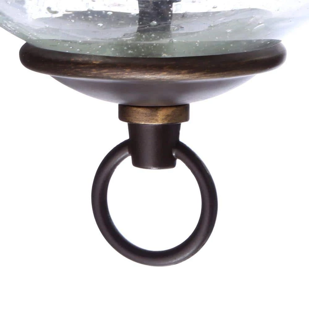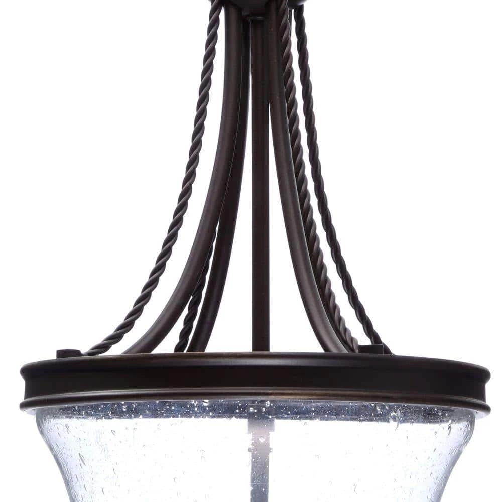 This stylish, classic pendant fixture has been updated to reflect today’s modern home fashions. Combining a textured seeded glass diffuser and intricate metal fittings, the character and charm of this fixture is the complement to your home. Perforated metal top cover permits light transmission for up lighting while helping to reduce dust collection in the glass shade.