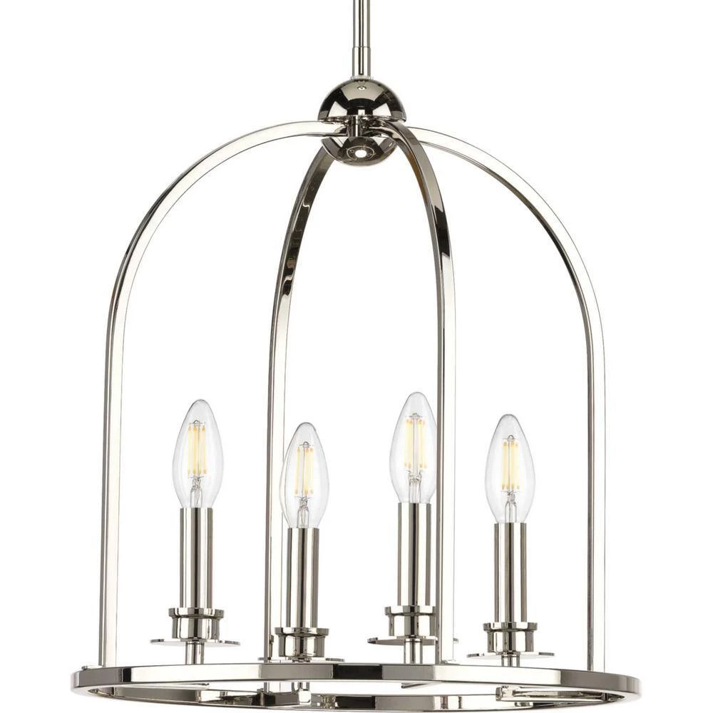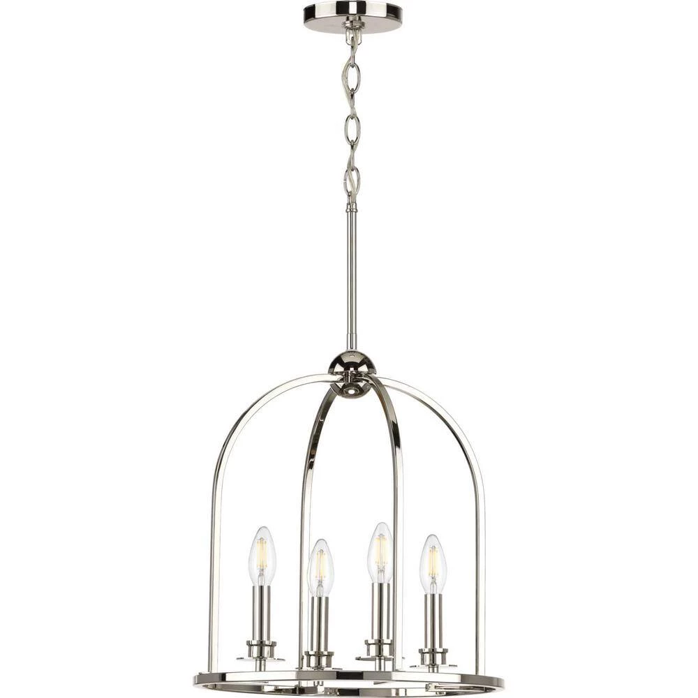 Satisfy any unsatiated visual appetite hungry for a rich lighting experience with the Seneca 4-light foyer. Four enchanting Polished Nickel arms extend from the simple orb that crowns the fixture. Classic candelabra lights ornament the smooth, round base, manifesting an overall reflective shine that’s just right for entryways, dining tables, and kitchen islands in modern farmhouse and luxe settings.