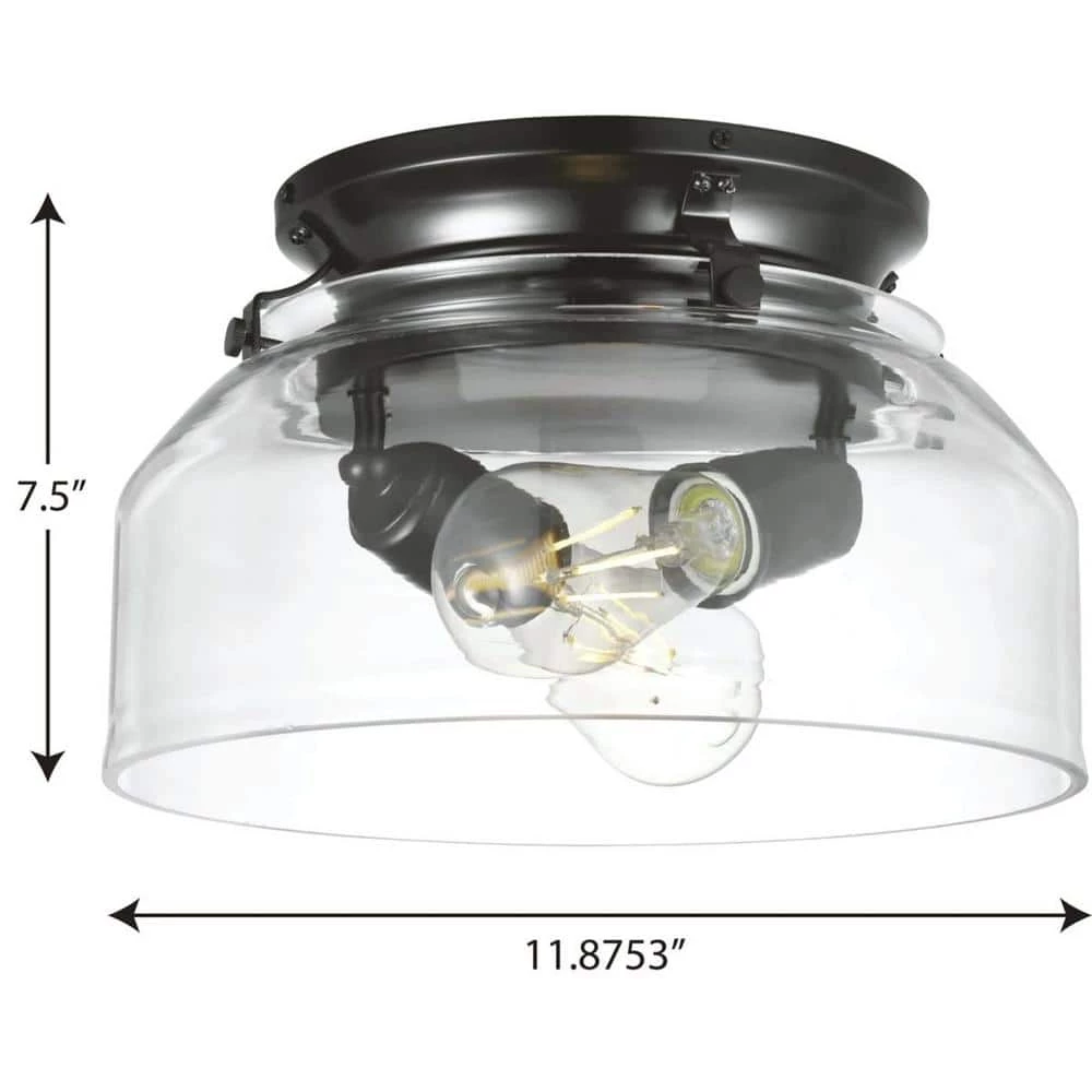 Upgrade your ceiling fan design with the Springer Collection Matte Black Clear Glass Light Kit. Perfect for farmhouse, rustic, and coastal style settings. Clear glass shade diffuses a beautiful glow. The light base is coated in a beautiful matte black finish. Measures 11.8753 in. diameter by 7.5 in. height. For ideal illumination, includes 2 medium base clear 7-Watt LED bulbs, fully dimmable. 2700K, 600 Lumens 90CRI. Open-bottom design for generous ambient light. Certifications: cETLus, and Dry Location Listed. Pairs with the 52 in. Springer Collection fans by Progress Lighting. Our 1-Year Warranty ensures your complete satisfaction with your purchase and we offer professional after-sales customer service support. It’s time to breathe new life into the mundane every day with timeless and truly transformative lighting. Make your purchase today to begin your journey to a whole new lighting experience. Progress Lighting products are designed for exceptional quality, reliability, and functionality.