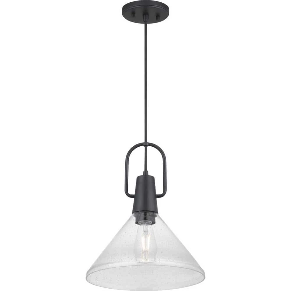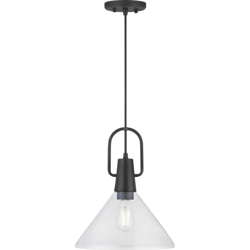 Upgrade your home with Progress Lighting’s Suwanee 1-Light Pendant. The clear seeded glass shade has a contemporary appeal that’s perfect for your kitchen, foyer or dining room. Installation is easy with the included mounting hardware. A 120 in. chord makes adjusting this fixture simple. The metal construction and matte black finish are built to last.