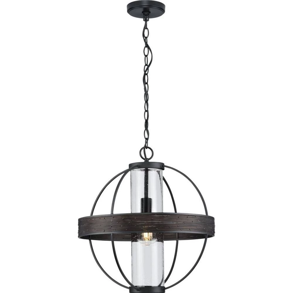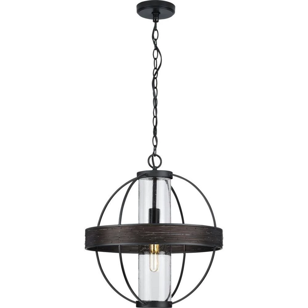 Furnish an elegant rustic focal point with the Terrace Collection. The pendant’s slender frame creates a captivating circular silhouette. Generous illumination is cast from a central seeded glass shade to highlight the bronze woven accent band. Will complement a variety of indoor and outdoor living spaces.