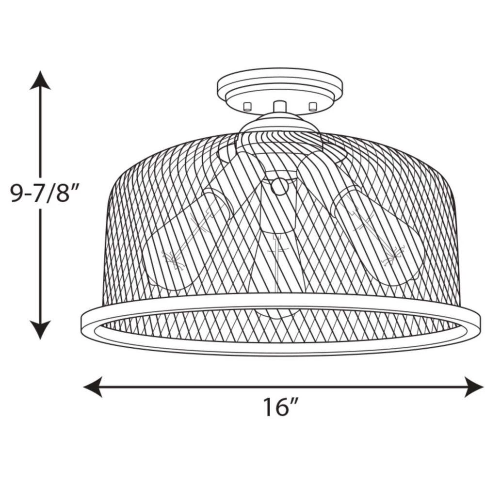 - Three light semi flush fixture