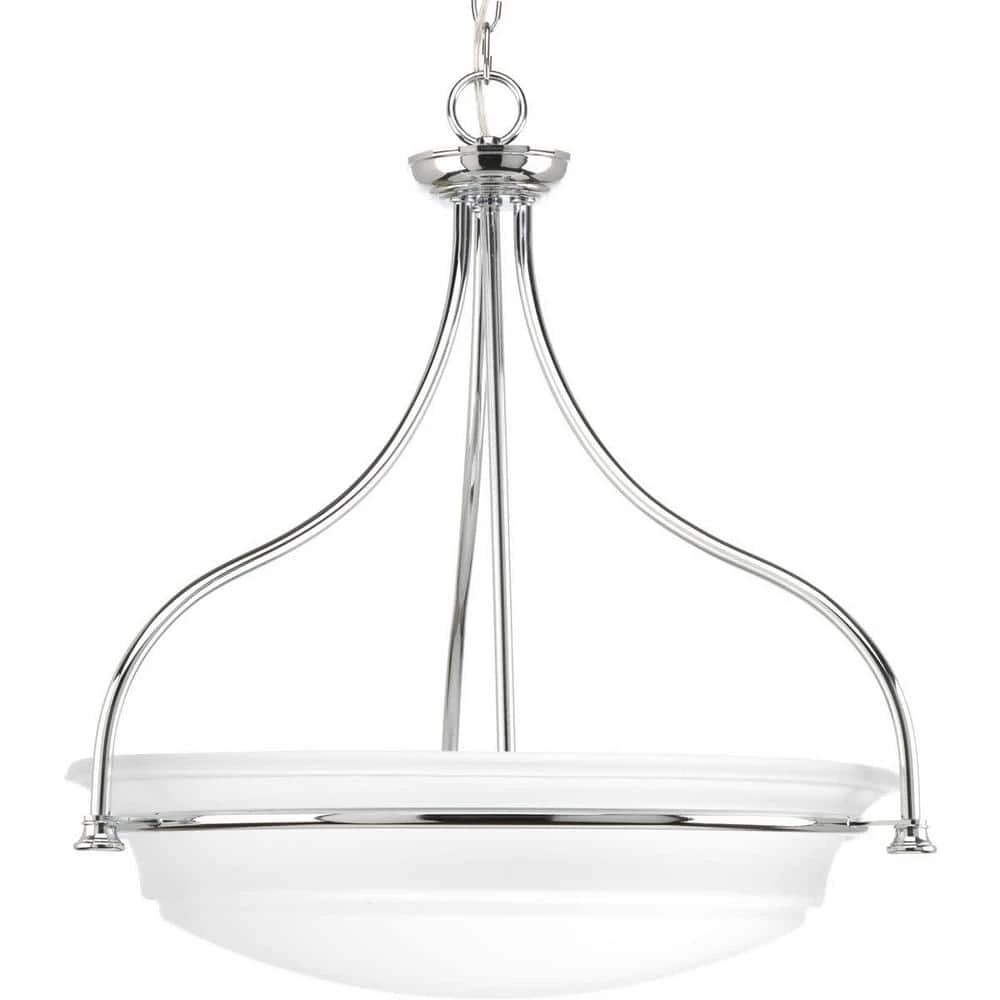 Featuring soft angles and impressive sculptural curves, Tinsley is a refreshingly updated design for Luxe, Transitional and Traditional interiors. The frame is complemented by classic etched glass shades or open candle designs. Overscaled details found in Tinsley are ideal for welcoming guests and visitors in a foyer or entryway, as well as in luxe dining room or traditional living room settings. Inverted pendant in a Polished Chrome finish.