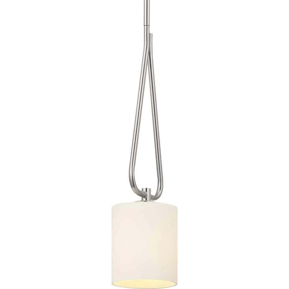 A modern take on a classic object, Tobin’s inspiration comes from the timeless mid-century forms. The tubular arms of the one-light mini-pendant extend outward and are made to form a gentle curve that showcase an etched white glass shade and finished in Brushed Nickel. The Tobin collection is ideal for those who appreciate Modern design styles.