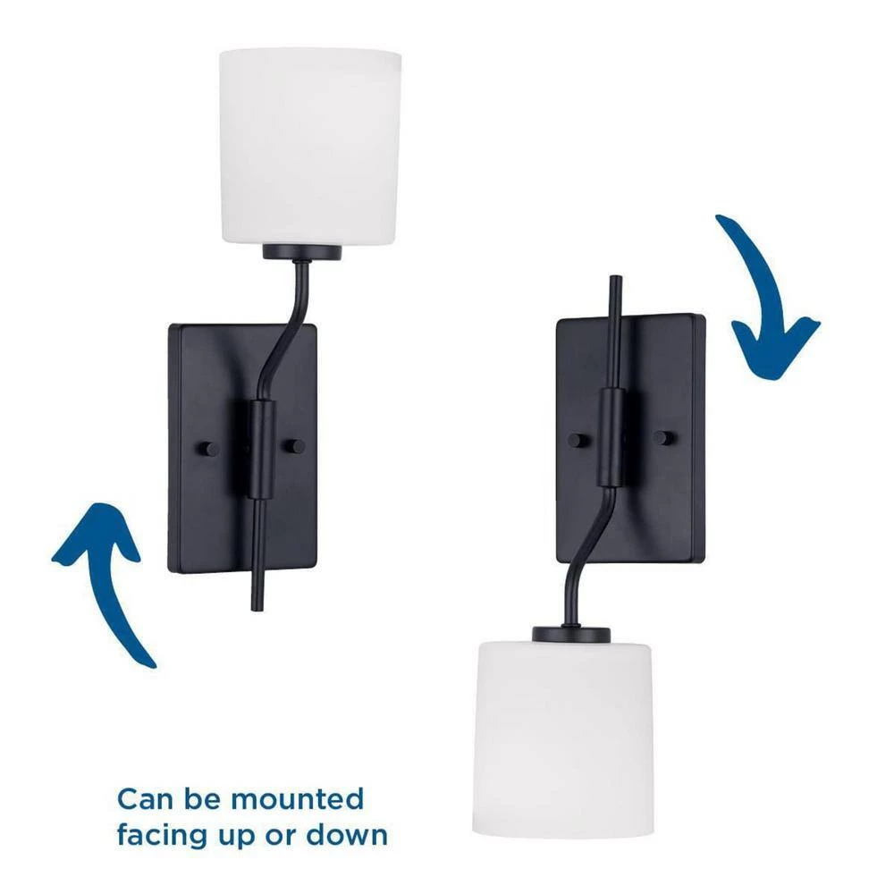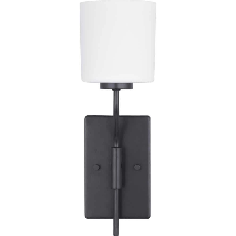 A modern take on a classic object, Tobin’s inspiration comes from the timeless mid-century form. The tubular arms of the one-light wall bracket extend outward and are made to form a gentle curve that showcase an etched white glass shade and finished in Black. The Tobin collection is ideal for those who appreciate Modern design styles.