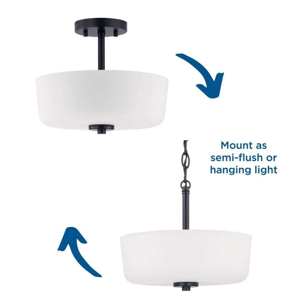 A modern take on a classic object, Tobins inspiration comes from the timeless mid-century forms. The tubular arms of the 2-light semi-flush convertible supports an etched white glass shade and finished in Black. The Tobin collection is ideal for those who appreciate Modern design styles.