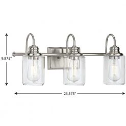 Aiken 3-Light Brushed Nickel Clear Glass Farmhouse Bath Vanity Light by Progress Lighting