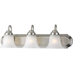 3-Light Brushed Nickel Alabaster Glass Traditional Bath Vanity Light by Progress Lighting