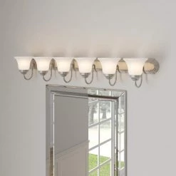 6-Light Brushed Nickel Alabaster Glass Traditional Bath Vanity Light by Progress Lighting