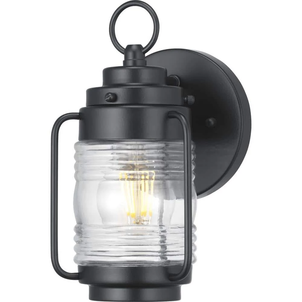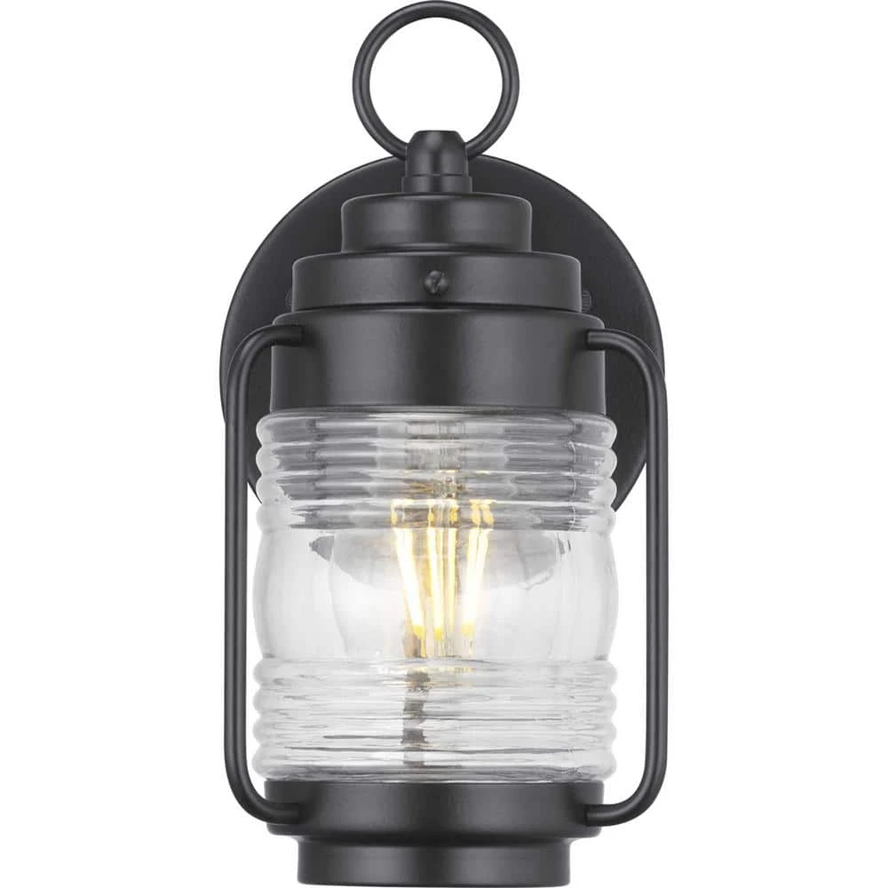 Enhance your home decor with the industrial-inspired Watch Tower Collection One-Light Wall Lantern. A matte black frame houses a ribbed clear glass shade. A versatile design compatible with a variety of exteriors and interiors.