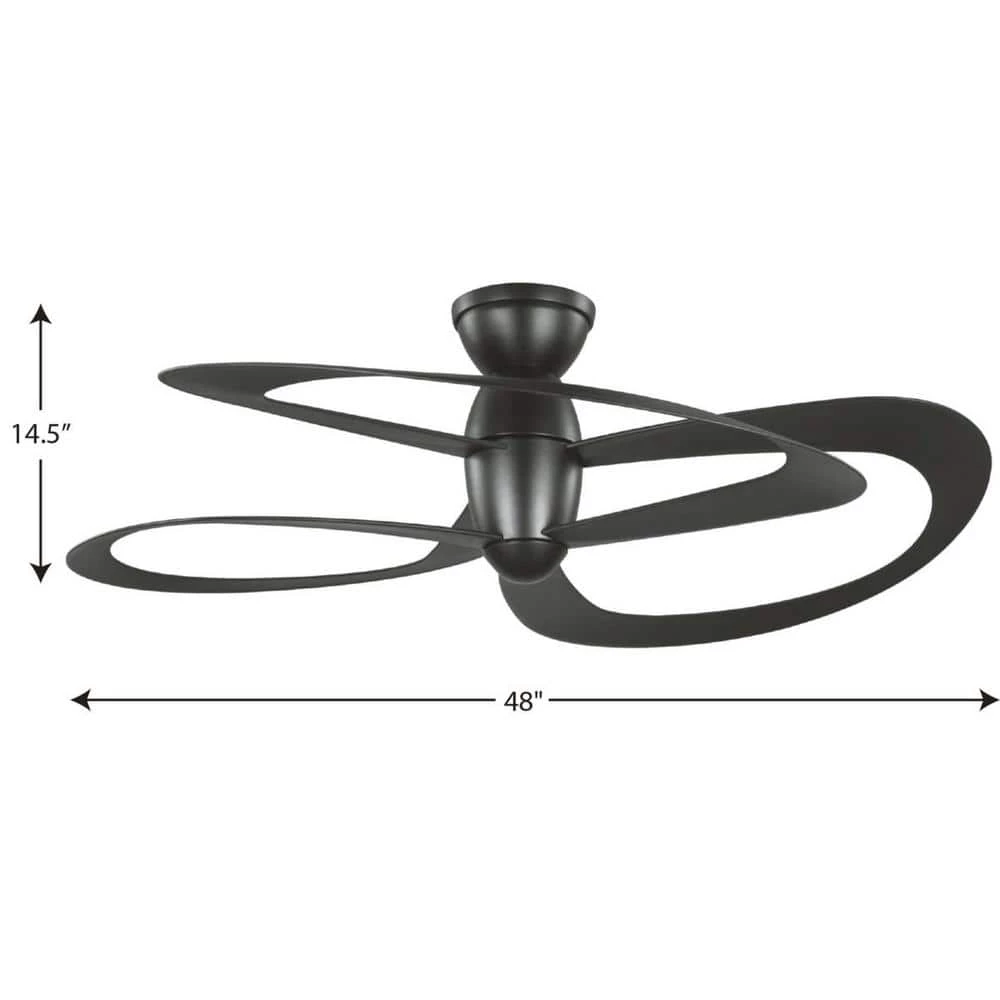 Create a striking focal point with the Willacy Collection 3-Blade Black 52 in. DC Motor Contemporary Ceiling Fan. Swirling, ribbon-like blades and a gleaming center hub are coated in a classic matte black finish. The blades are crafted from a strong, all-weathered ABS material to prevent warping. Includes Wi-Fi smart control that is compatible with most tablets, smartphones or voice assistants. A full-function 6-speed remote control with batteries is also included so you can adjust full-range dimming and fan speed without breaking a sweat. The ceiling fan’s flowing design is ideal for any living room in contemporary style settings. It’s time to breathe new life into the mundane every day with timeless and truly transformative lighting. Make your purchase today to begin your journey to a whole new lighting experience. Progress Lighting products are designed for exceptional quality, reliability and functionality.