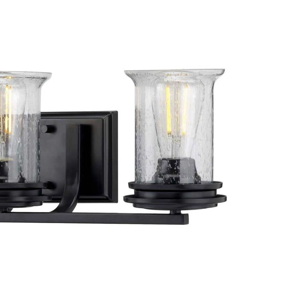 Immerse yourself in a home atmosphere primed for relaxation and inspired thinking with the beautiful craftsmanship of this bath light from the Winslett Collection. Savor this fresh take on a classic light choice as your gaze traces graceful arms and clean crisp lines coated in a beautiful black finish. Lightly seeded glass shades rest in shiny pedestal light bases that add an unexpected, but welcomed dash of modern personality to this clean, traditional design.